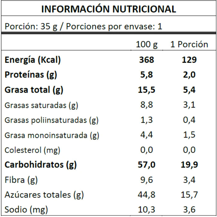 Barrita 100% natural en base a dátiles y frutos secos, con sabor a cacao coco. Es una barrita ideal para deportistas, colaciones y snack de media mañana. La barrita es de 35 grs. ![]()