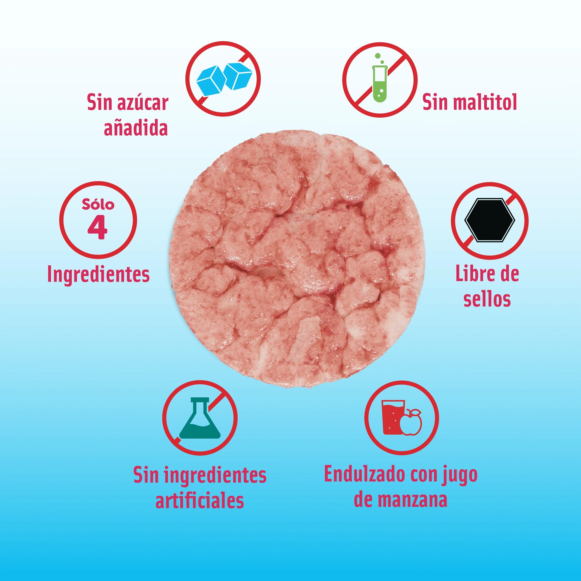 Descubre el snack perfecto para colaciones saludables y deliciosas. Estas galletitas de arroz integral están cubiertas con jugo natural de fruta, ofreciendo un irresistible sabor a frutilla y murta que encantará a grandes y pequeños.